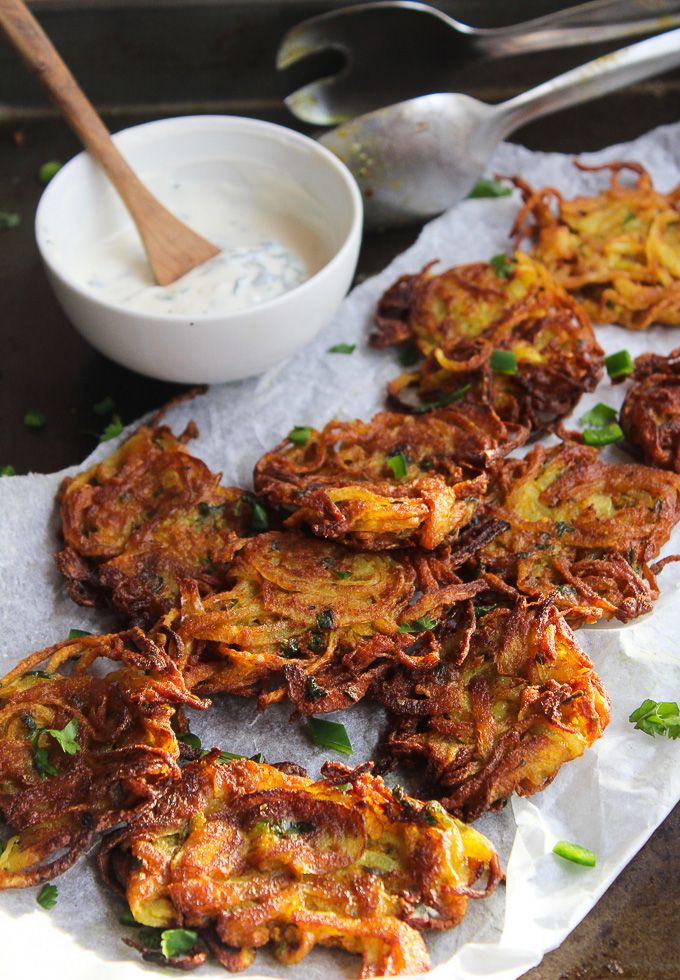 Thinly sliced onions mixed with gram flour (besan), spices, and herbs, then deep-fried until golden and crispy.